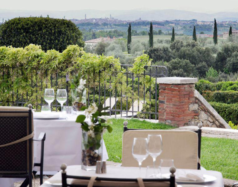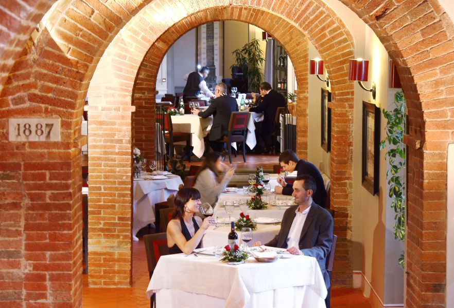 The "Tinaia" restaurant, located in the old wine cellars of the Borgo, offers a romantic atmosphere where you can enjoy delicious local and regional flavors presented with original twists by the estate's chef. You can thus choose to dine in every evening, first enjoying the sunset from the estate and the view of Siena in the distance as you enjoy a glass of wine or another cocktail from the bar.