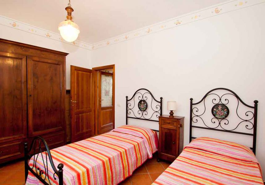 The villa lends itself to a family vacation or a group of friends getting together. There are three bedrooms: 1 double bedroom, one bedroom with two twin beds and on the top floor there is a large bedroom with a single bed. All bed, bath and kitchen linens are provided with the rental. There is one large bathroom with a sink, WC, bidet and shower. The house is furnished with a fully functional and comfortable kitchen including a large refrigerator, stove with oven and a dishwasher and especially helpful is the washing machine for those longer holiday stays.
