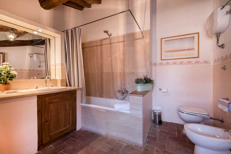 The four double bedrooms with their romantic, Tuscan decor is perfect for couples on a anniversary trip, honeymoon or a special getaway. All rooms enjoy a spectacular view of the surrounding Tuscan countryside, have been furnished with typical rural antiques and decorated with original paintings by local artists.