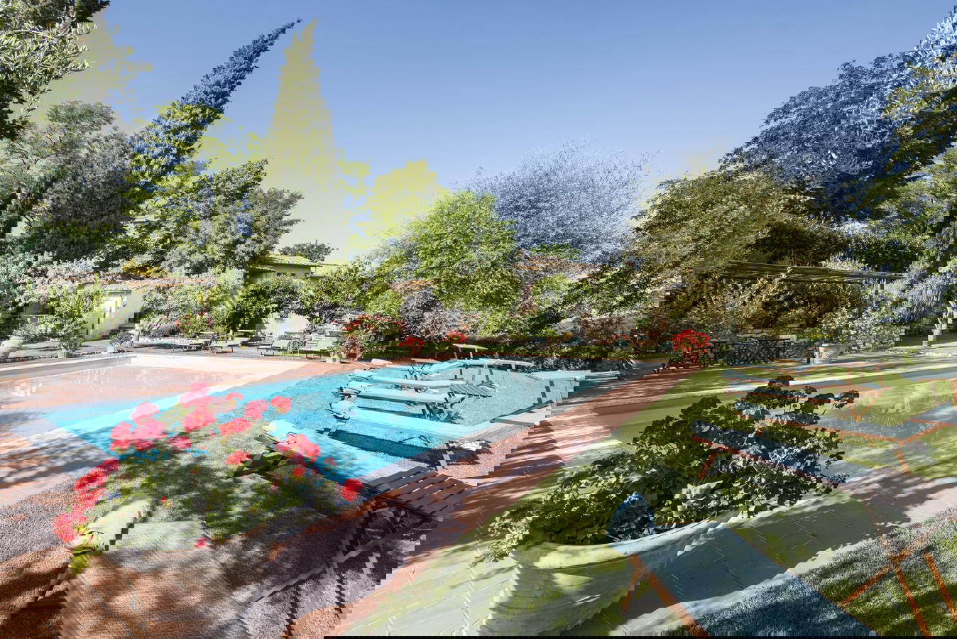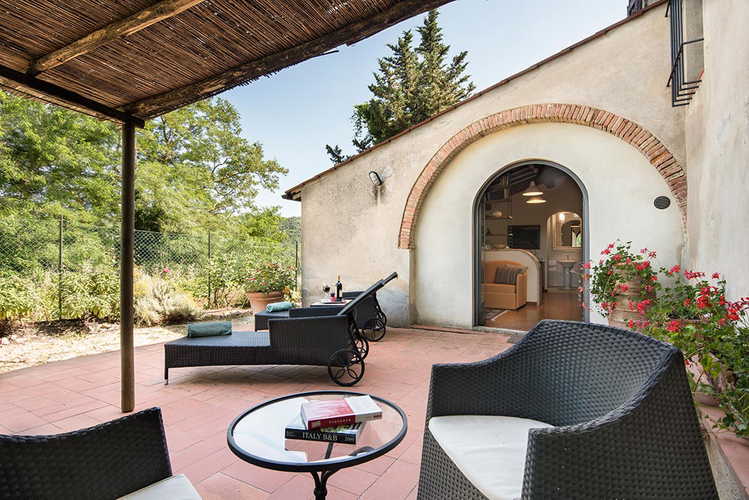 The accommodations are divided into 6 double rooms with and three suites with a living room area. Besides the lovely original architecture, Casolare di Libbiano has several special features including WiFi in all the common areas, ceiling fans in the bedrooms, and screens on the windows. In the gardens surrounding the rooms, there is a lovely sun terrace with tables, chairs and umbrellas for a nice place to enjoy a snack, a book or breakfast. The pool, with a lush green lawn, is the perfect place to catch some warm Tuscan sun while taking a quick nap.
