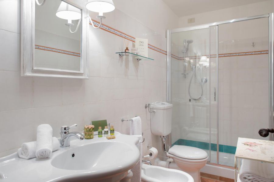 If you are looking for just a bit more privacy you can look at the quaint independent villa called Casina set on its own, right behind the main building. The warm wooden décor, air conditioning and the shady garden are perfect for a romantic vacation for two.