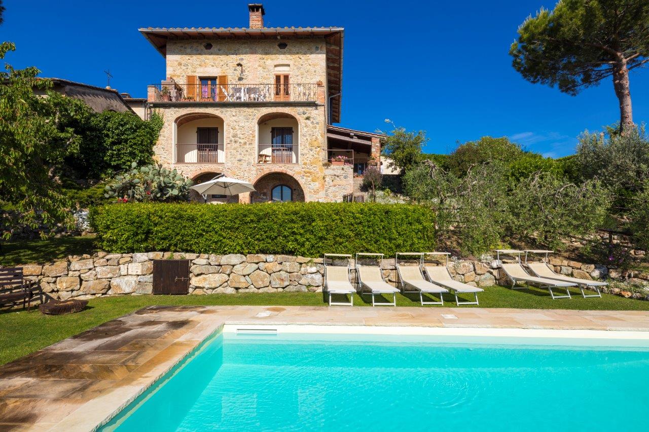 The scenic position of the crystal clear swimming pool looks directly over San Gimignano