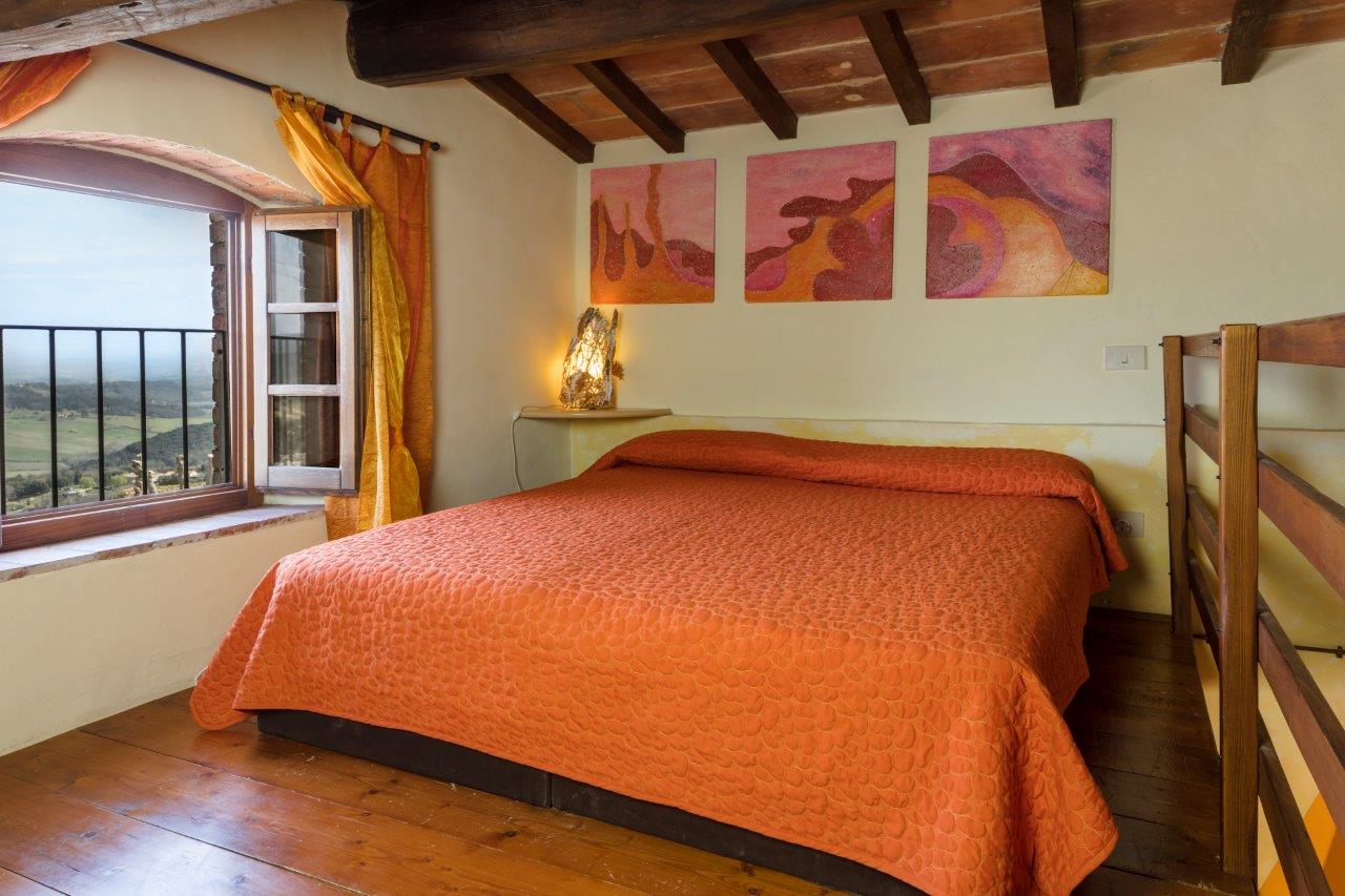 Camera La Loggia is located, above Casa Simona and has a private entrance and a magnificent terrace for enjoying a glass of Tuscan wine or admiring the beauty of the surrounding landscape. It can host two people and a baby bed may be added upon request. La Loggia and Casa Simona can also be comined for creating a larger accommodation unit. Guests of La Loggia may enjoy all the services of Casa Giovanna, included pool with solarium, garden with bbq area. This room comes with daily cleaning and towel changing.