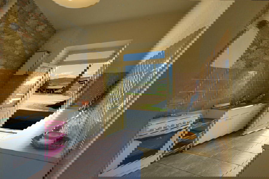 They are equipped with all main comforts, such as independent heating and a well-equipped kitchenette. The thick stone walls of the farmhouse keep the apartments cool, while open windows let the sea breezes come in. If you stay in the lower apartments and it gets warm, you might need to request a fan from the owner.