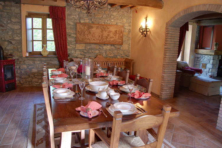 The perfect combination of both a modern and a colorful decor, accenting the lovely stone walls, wood beam ceilings and terracotta floors, gives the vacation villa the air of home. The large fluffy sofas invite you to settle in for an evening of laughter and fun in front of the fireplace or a movie from the well stocked video library. During the warmer months, an evening out on the covered terrace or under the pergola by the pool, will have you admiring the stars and tranquility of the panoramic position. Montecastello is organized to provide private corners for everyone, so stay as a group or pair off for some romance!