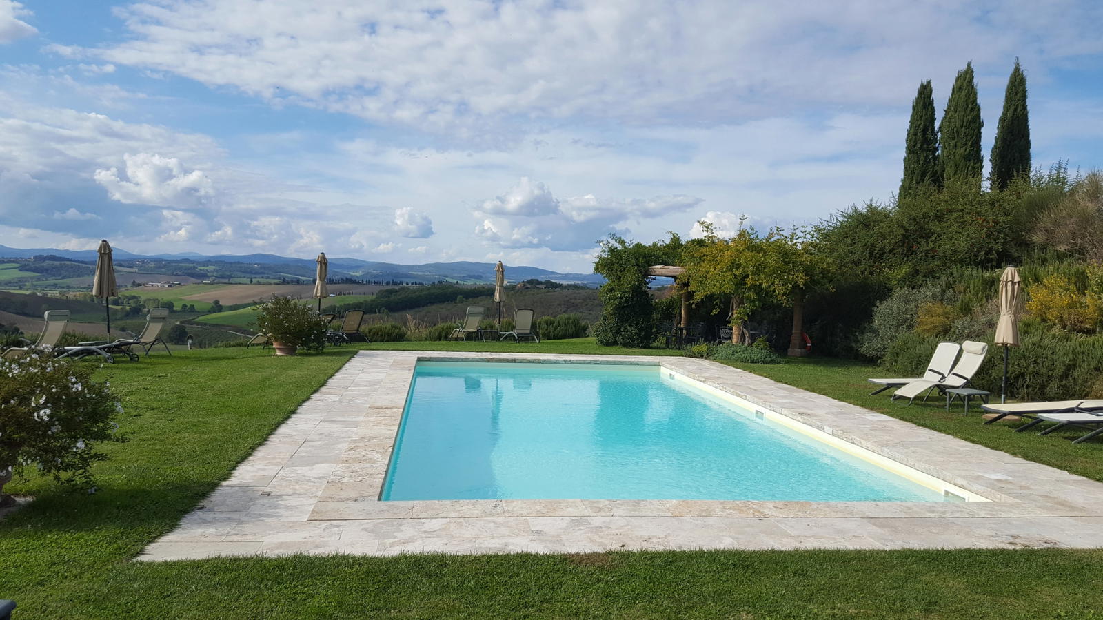 Spectacular views of the Crete Senesi and Montalcino from the apartment and by the pool