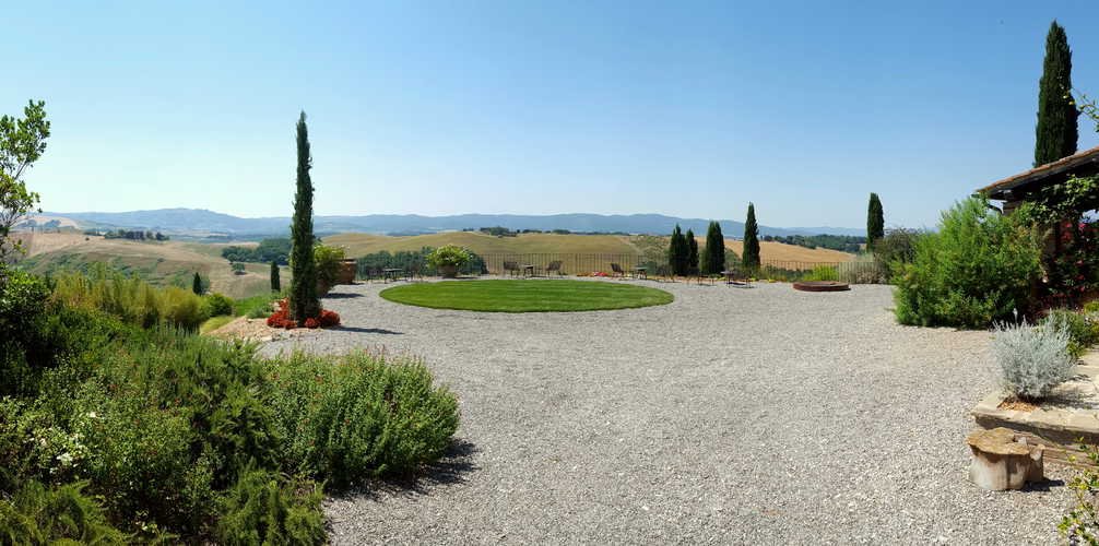 The 7 apartments each have their own external area with chairs and a table to enjoy the garden and the panoramic views on the surroundings: Montalcino, Monte Amiata and the beautiful Crete Senesi and Val d'Orcia.
