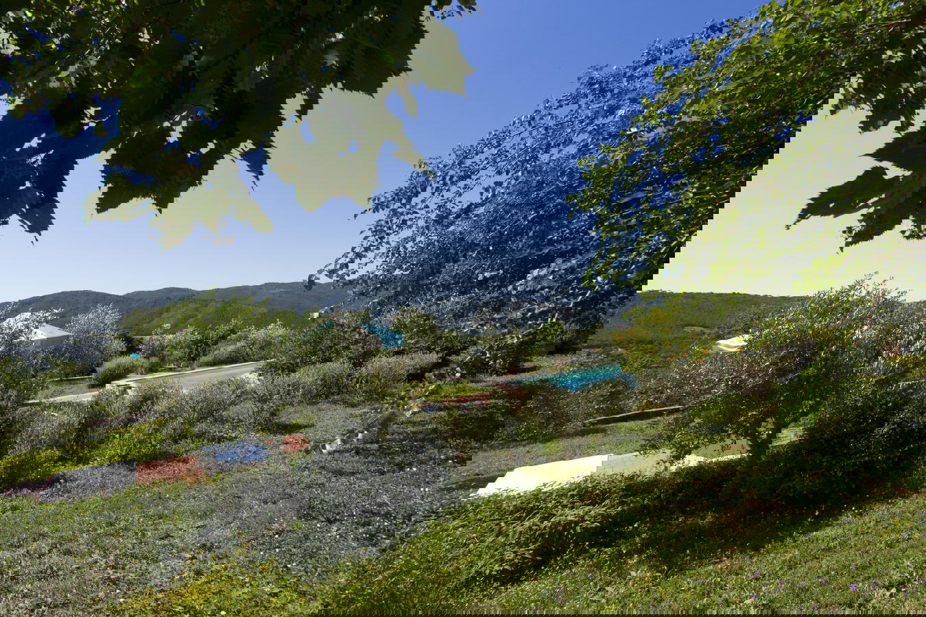 The accommodations are rented out as a whole vacation villa in Tuscany. Built in the 18th century, the country home has been totally restored with simple accent colors and minimalist decor. The owner incorporated several eco-sustainability aspects, respecting both the original structure as well as the environment around the holiday accommodations. The main country house at Terzo di Danciano offers a bed & breakfast experience for anyone attending a special event or retreat hosted at the villa and, upon request, both the use of the vacation home and common rooms can have a lovely homemade breakfast prepapred and served in the garden for every day of your stay.