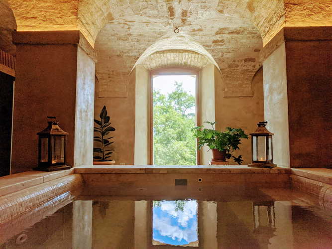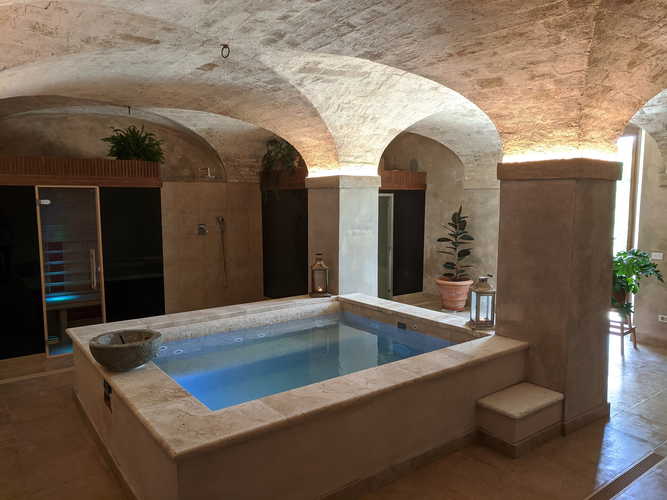 The Spa area - as well as the entire property - is heated with biomass fuels and with a state-of-the-art super efficient boiler system. All of the water used in the Spa area is reused across the property for watering the lawns, an important aspect that Luca, the owner of Terzo di Danciano, seeks to implement with each renovation and new project that comes up.