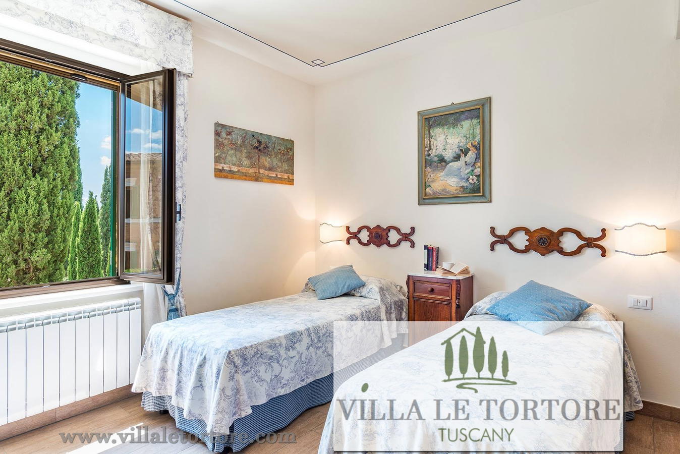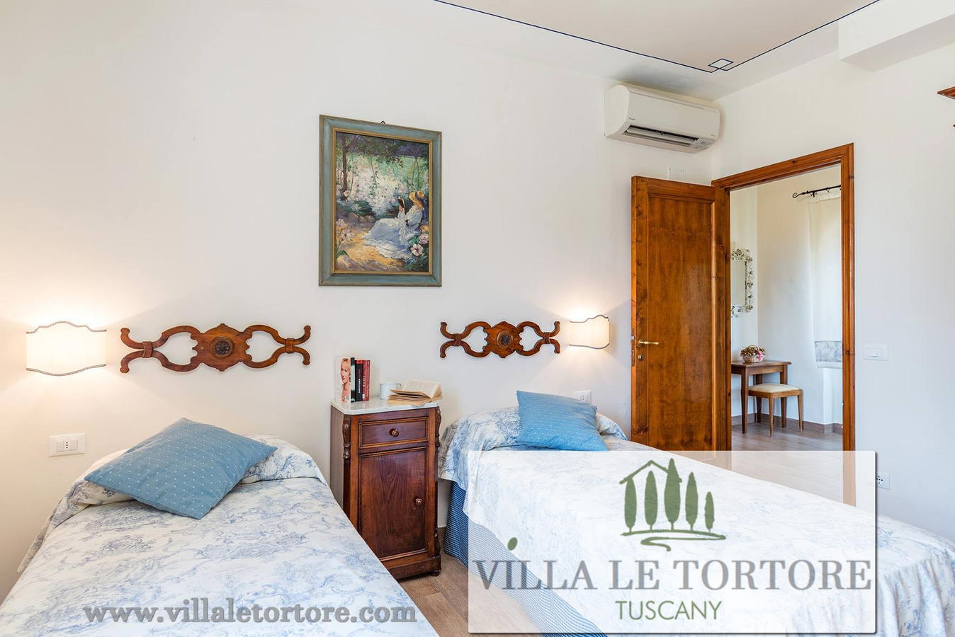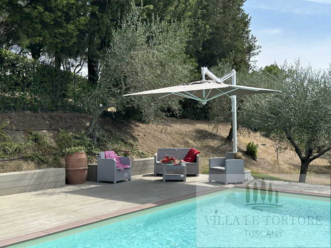 The villa has been recently completely renovated with great attention to all details, keeping its original structure but updating it to meet all of today’s modern needs. From air conditioning to a fully-equipped kitchen with dishwasher, refrigerator and oven to washing machine and a covered outdoor patio with BBQ grill, a private pool, hottub, and tennis court, guests of Villa Le Tortore will enjoy a relaxing and memorable holiday in Tuscany. It will be hard to leave at the end of your stay!