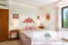 Going upstairs, there are two double bedrooms (one with 2 single beds and the other with a double bed) and another bathroom with shower. The villa has air conditioning in this upper level, mosquitos nets in all of the windows, internet Wi-Fi and SAT TV, as well as CD and DVD players and a washing machine.