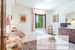 The covered portico area will invite you to spend time outdoors, whether it be relaxing and reading on the comfortable sofa or dining al fresco at the outdoor table. The garden paths lined with flowered pots lead the way to the private heated swimming pool which has sunbeds and umbrellas to provide shade on summer days. The pool is open from the beginning of May through the end of September.