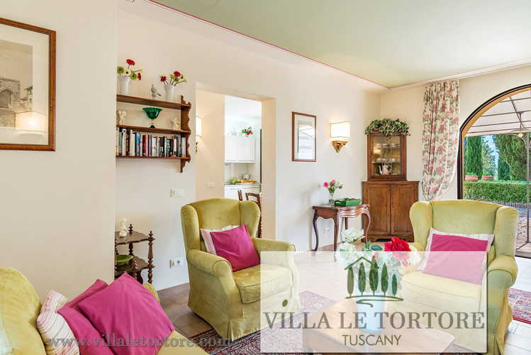 Renovated to maintain its original structure, the villa is furnished in the Tuscan country style blended with the elegance of a city home. Its large windows offer bright natural light to all the rooms.